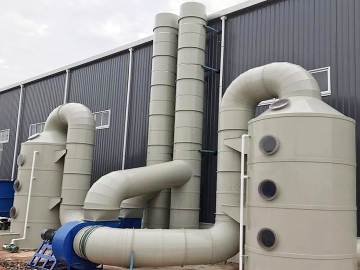 ● 除塵領域中,噴淋塔可作為濕式除塵器,尤其適用于含塵濃度不高但氣體含有一定毒性的場合,只要選擇配置合理,凈化后的氣體均可達到國家排放標準。